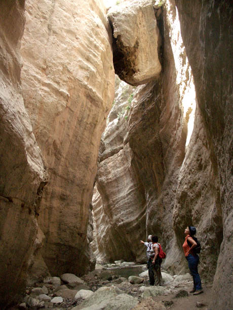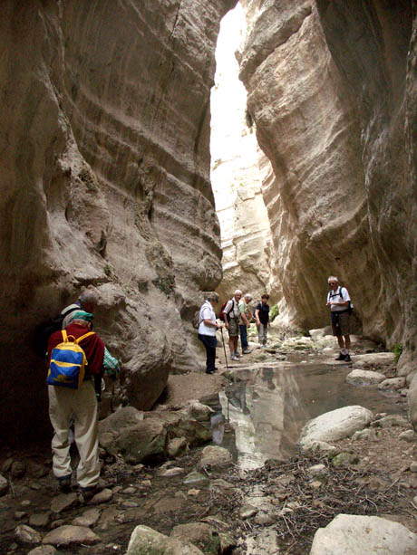 addentrarsi in una gola tra pareti di calcare alte fino a 40