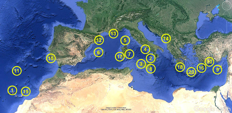 Mari: Mar mediterraneo 16 volte, Oceano Atlantico 4. |